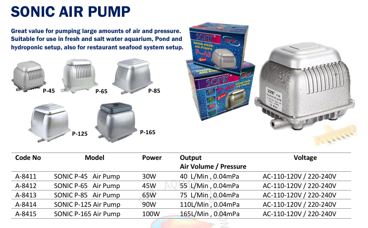 Great value for pumping large amounts of air and pressure. Suitable for use in fresh and salt water aquarium. Pond and hydroponic setup, also for restaurant seafood system setup.